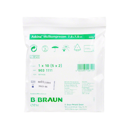 ASKINA Mullkompressen 7,5x7,5 cm steril – оригинальное немецкое качество.