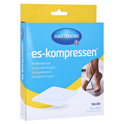 ES-KOMPRESSEN steril 10x10 cm 8fach 17fädig – PZN 16875901